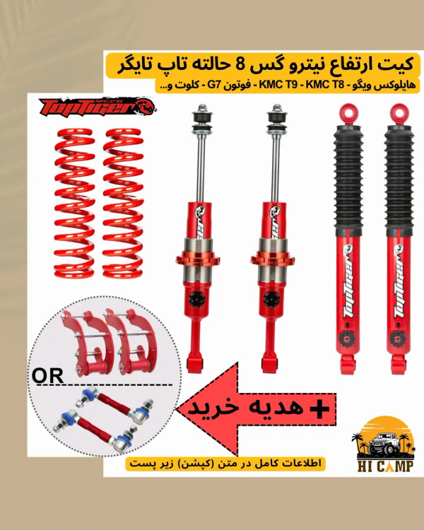 کیت ارتفاع کامل تاپ تایگر مدل نیتروگس ادجاستبل (قابل تنظیم 8 حالته) مناسب تویوتا هایلوکس ویگو، فوتون، کیامسی (جک) T8 T9 و...